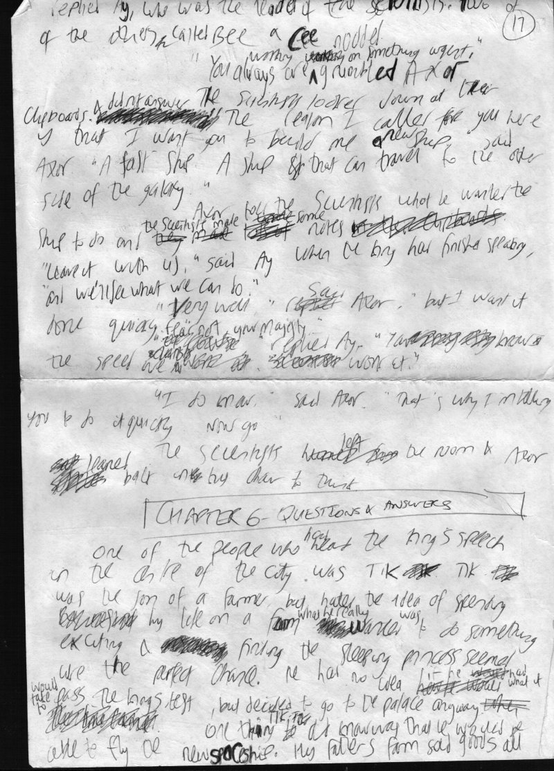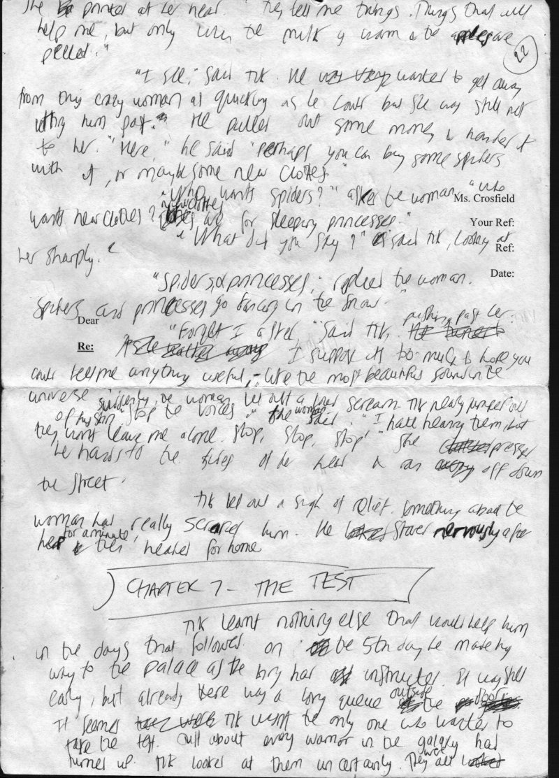 Mind you, I can't pretend I entirely did away with handwritten notes. For some reason, I find these to be a great aid to the imagination and continue churning them out to this day. Click on the thumbnails below to see some examples of my handwritten work for The Crystal Ship. They are a little tricky to read, I'm afraid, but they do show you how I work.
