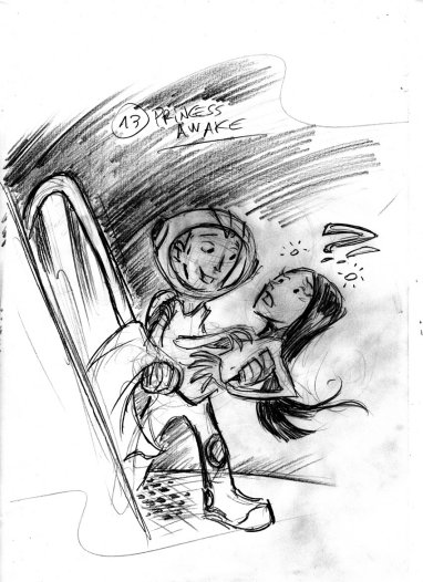 The party goes as planned, until a mysterious stranger in a golden mask arrives. When challenged, the stranger tells the king and his guests the tragic tale of Princess Sky, who was sold to an alien prince by her own sister hundreds of years earlier. This prince fell in love with Sky during the journey back to his home planet, so when his ship came under attack by a powerful enemy, he put her into hibernation and launched her to safety in a crystal escape pod. The prince's ship was destroyed in the ensuing battle, but the escape pod was somehow overlooked and drifted away into space. It is suggested by the stranger that it may still be out there somewhere and that the sleeping princess could be alive and well.
