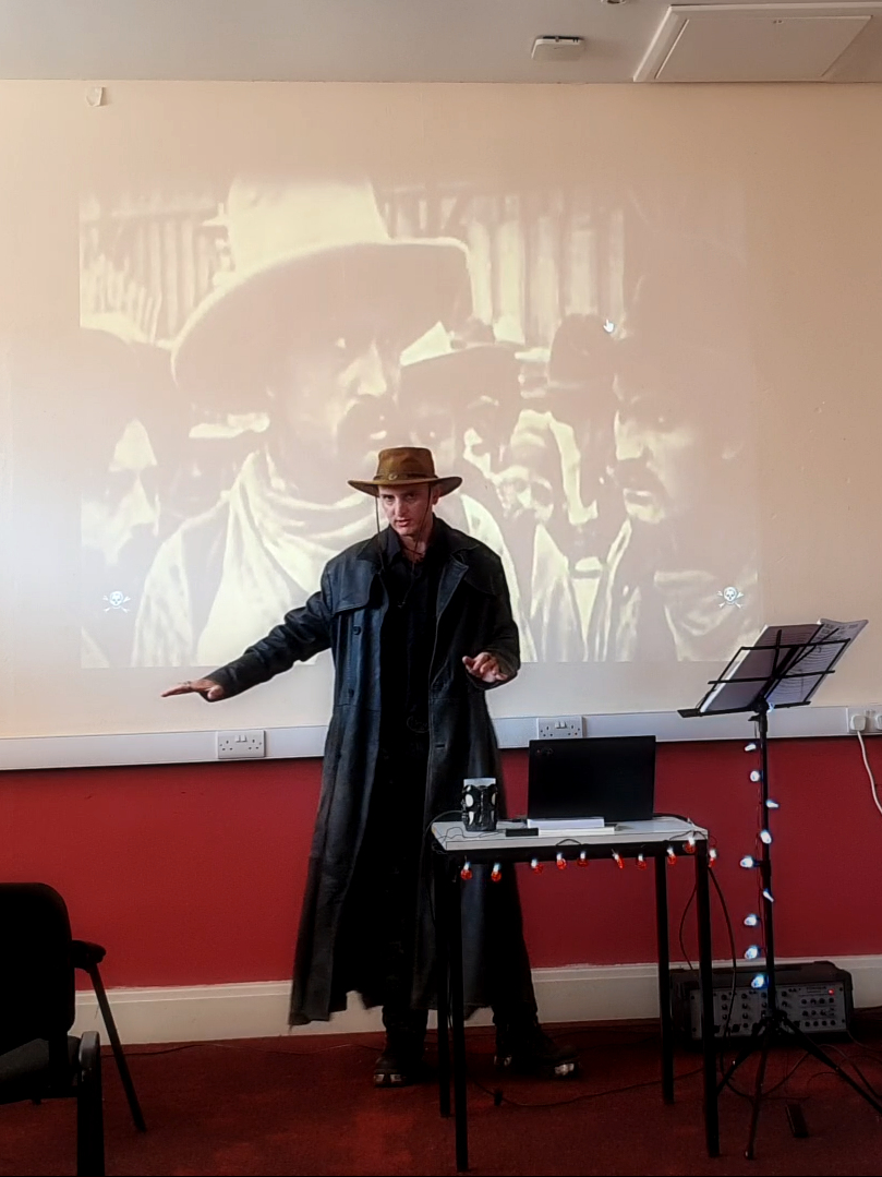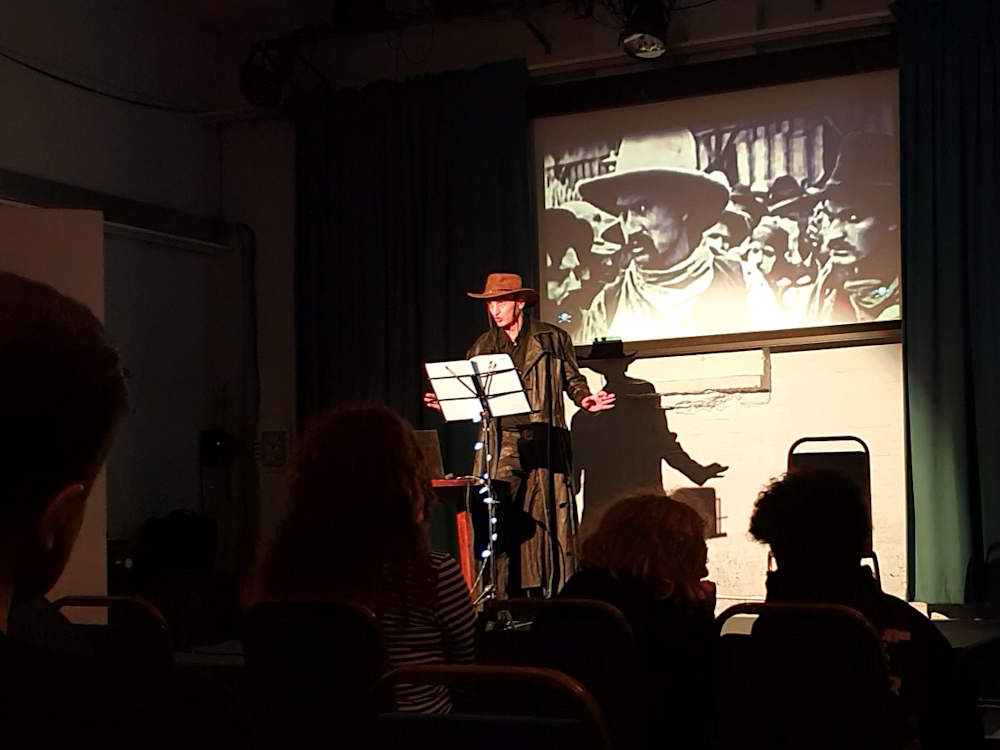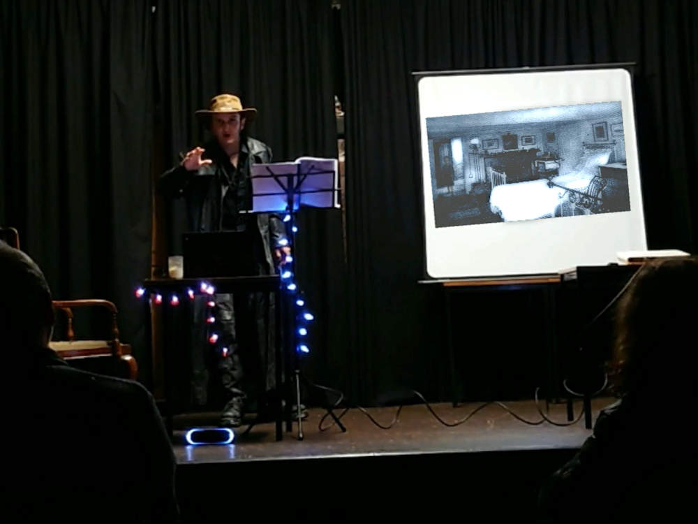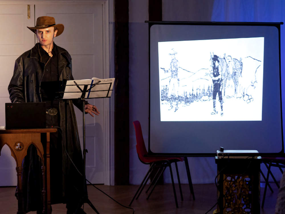 As mentioned above, the Tales in the Key of Terror show sees C.J. Carter-Stephenson giving performed readings of two of his horror stories, supported by sound effects and an orchestrated backdrop of projected images. The stories were chosen because they lend themselves well to the production's format and because they are from different positions on the horror spectrum. Eerie and engaging, it's a show that takes you from the prairies and ramshackle towns of the Wild West to the dark depths of space.