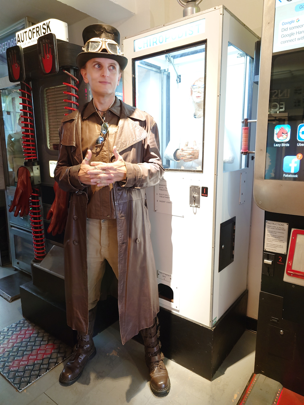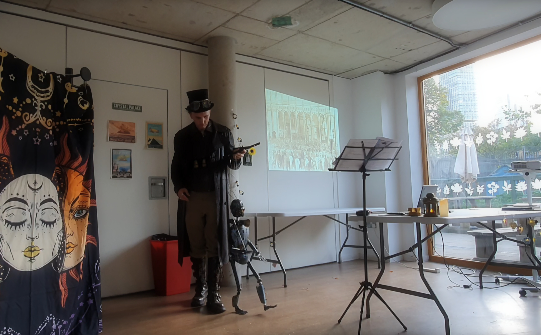 In his Skysteamer to Athens show, C.J. Carter-Stephenson performs an abridged version of his novelette of the same name, transporting his audiences back to a time when top hats and corsets were the height of fashion and the wonder of steam was transforming the world. Packed full of fantastical technology, it's particularly targeted at people with an interest in the eccentric steampunk subgenre, though sci-fi fans in general should also find much to enjoy. The author uses props, sounds and images to create a lavish sensory experience which will hopefully live on in the memory long after the final word is spoken. See a miniature airship fly, meet an automaton puppet and thrill to twists of the plot in this fast-paced storytelling extravaganza. Cast off your mooring ropes and prepare to soar into the clouds.