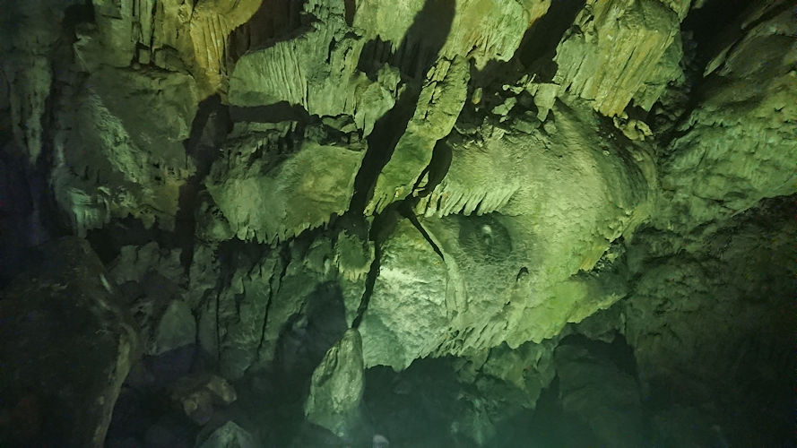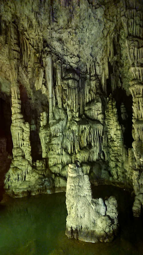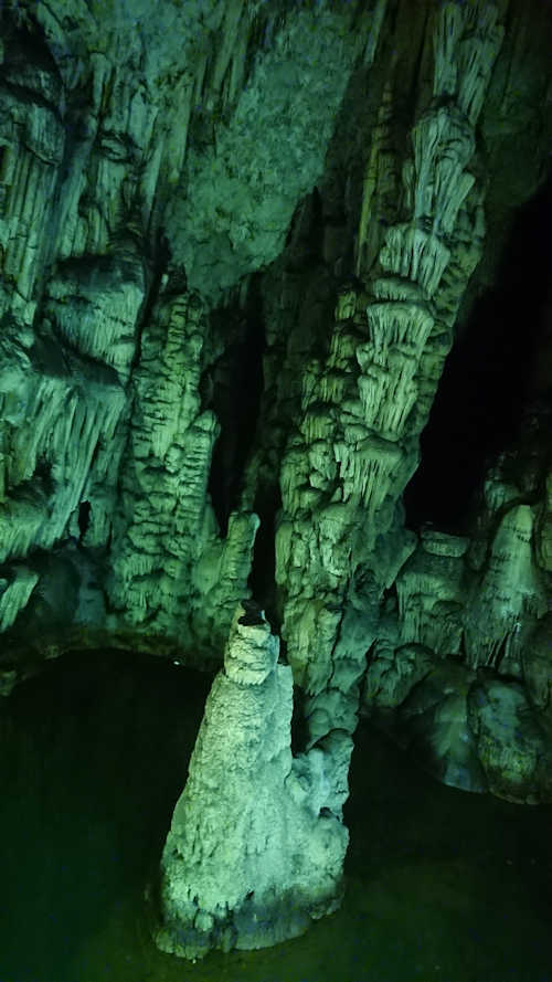 The most vivid imagination would struggle to conjure up this place of wonder. A vast subterranean world where the trappings of modern life are but a distant memory. Stalagmites and stalactites loom to either side, thick as tree trunks. They look like columns, but have no structural purpose, for the roof of the cavern supports itself. It is easy to imagine how it became a place of worship, easy to believe that anything might be possible in its core. Magic, serene, surreal. To walk here is to see the bowels of the Earth.