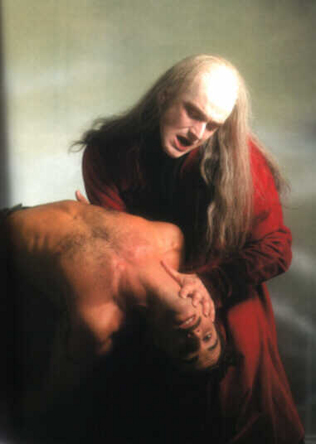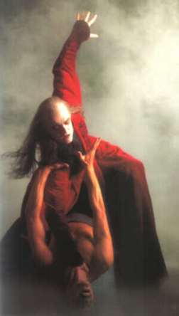 My overall impression was that the characters were not distinctive enough. The only person the audience truly empathised with was Dracula himself. It took the appearance of the majestic Count, attired in a sumptuous crimson robe, to provide us with any kind of focus, and his batlike movement down the wall of Lucy's house was one of the only effective movement-motifs. Admittedly it was interesting to watch Renfield writhing in a strait-jacket and eating imaginary insects, but even his character was prevented from being fully effective by the obscurity of his role. None of the other characters invoked much emotion at all, though Van Helsing, rushing around the stage armed with strings of garlic and a crucifix, brought back memories of Peter Cushing in his Hammer heyday. A dramatic ballet needs to firmly establish its characters; on the whole this production failed to do this. That said, the atmosphere and overall feel of the piece were excellent, and I would rank it among the best pieces of performance I have seen.